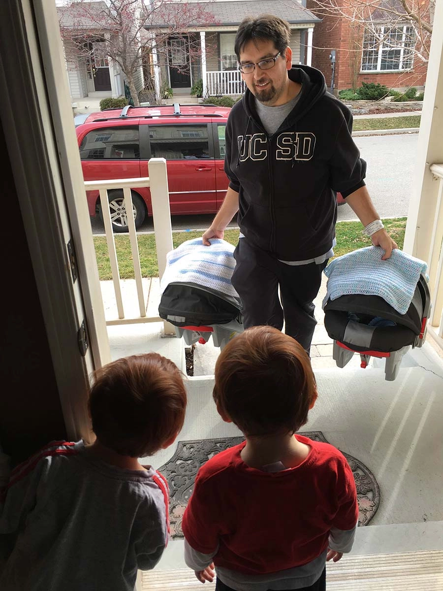 Multiples often run in families so news of expecting twins is not that surprising for some families. For Kim Tait of Oakville, the news that she was expecting a second set of twins wasn’t as surprising or shocking as you might think. She says, “I just knew. I think your brain prepares you for this type of shocking information. We weren’t trying for more kids, so when I got pregnant again, I knew it was (twins) and wasn’t surprised when they told me.” For Lyndsay Petican of Burlington, the news was taken pragmatically. “We were like yes, this is what we do! We make twins. We already had the infrastructure, like car seats, cribs, and highchairs,” she explains.