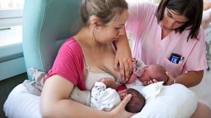 Generally, as a mother of twins, she will try to come see you as soon as you arrive in your room. She will sit with you and warmly walk you through the process of breastfeeding your twins.