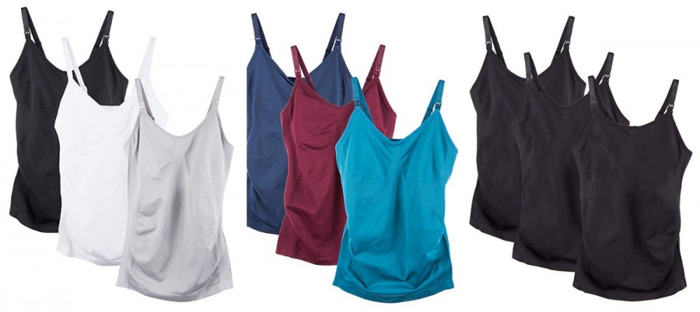Caramel Cantina 3 Pack Women’s Nursing Cami Built in Bra is a great 2-in-1 soft tank top and nursing bra. You can wear it by itself or under another loose top. It comes in many sizes and colors, thus matching everything. You will want to buy at least a few packs of these because in the beginning, milk will leak and babies will spit up on you.